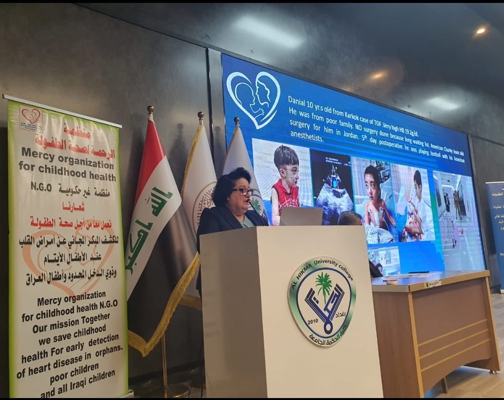 Our first symposium For the early detection of congenital heart diseases in childrenand new born babies Organized by Mercy Organization for Childhood Health, headed by Dr. Iman Al-Obaidi, Family Medicine Association headed by Dr. Muntazer Al-Zaidi, Pediatric Society headed by Dr. Nagilla Ayoub’s, Emergency Medicine Society headed by Dr. Ali Al-Rawaf And in the presence of Dr. Jassem Al-Azzawi, the captain of the Doctors Syndicate And the Director General of International Health, Dr. Wissam Al-Tamimi. Dr. Jaafar Al-Ghabban, Chairman of the Pediatric Board, and Dr. Hussein Jubeir, Interventional Doctor of Catheterization in Ibn Al-Nafis. The organization gave a lecture on the importance of early detection of heart diseases in children to save the lives of Iraqi children with heart diseases and birth defects. . The organization’s work on free early detection of heart diseases in children was presented for the period 2-7-2021 until 10-12-2021. 11 His doctor carried him to orphan associations. The Family Rehabilitation Center. Air Force Command… The organization’s medical committee received 211 calls from all governorates of Iraq. Sick children with congenital heart defects. We asked them. Interventional catheter doctors cooperated with us. Cardiac Surgeons. Committees of the Ministry of Health …….. We will not leave a child suffering from heart disease in Iraq. Dr. Iman Al-Obaidi, President of Mercy Organization for Child Health, contact Email mercyorg21@gmail.com Cellphone 009647739400008 009647712869961
